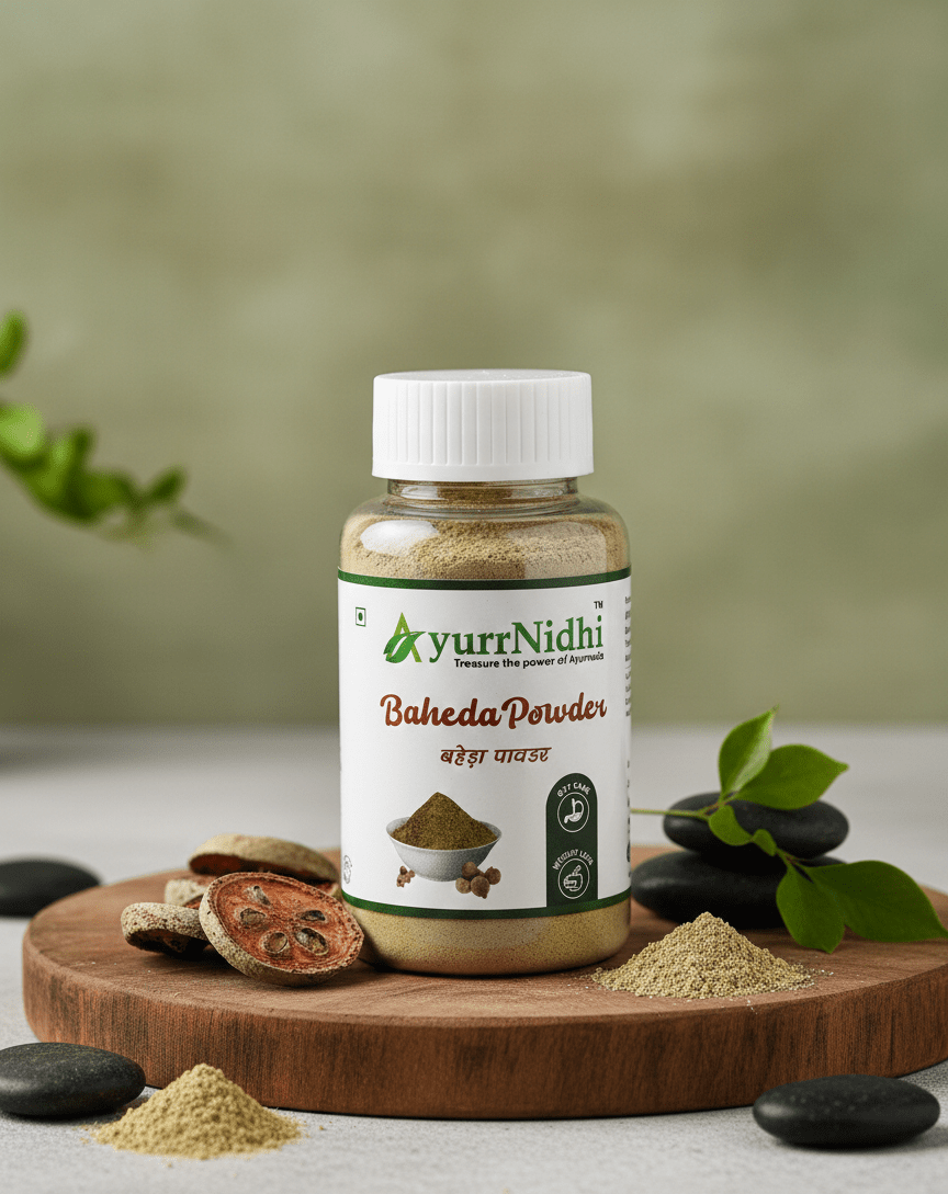 AyurrNidhi Baheda Powder is crafted from pure baheda, a powerful Ayurvedic herb known for improving digestion, supporting respiratory health, and enhancing immunity.