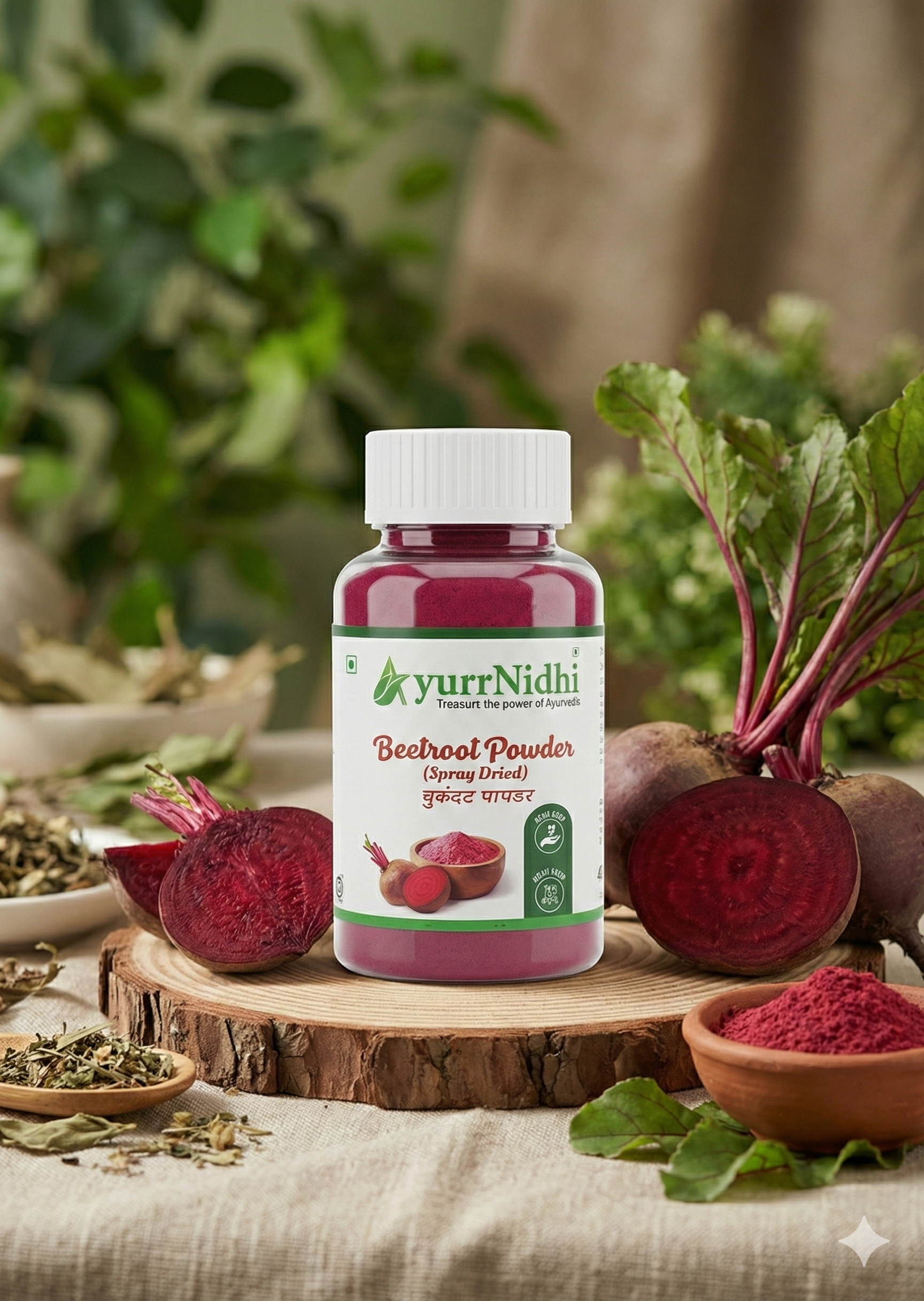 Ayurrnidhi Beetroot Powder is prepared from naturally dried beetroot to create a smooth, fine-textured powder suitable for everyday use. This herbal powder can be added to beverages, smoothies, home-cooked dishes, and DIY herbal mixes to enhance your routine with plant-based ingredients.