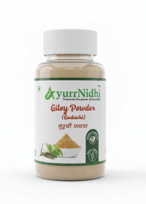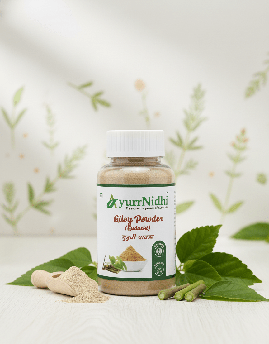 Ayurrnidhi Giloy Powder is crafted from carefully selected and naturally dried giloy stems, finely processed to maintain purity and traditional value. Giloy is known in classical Ayurvedic texts as a widely used herb in various traditional preparations.